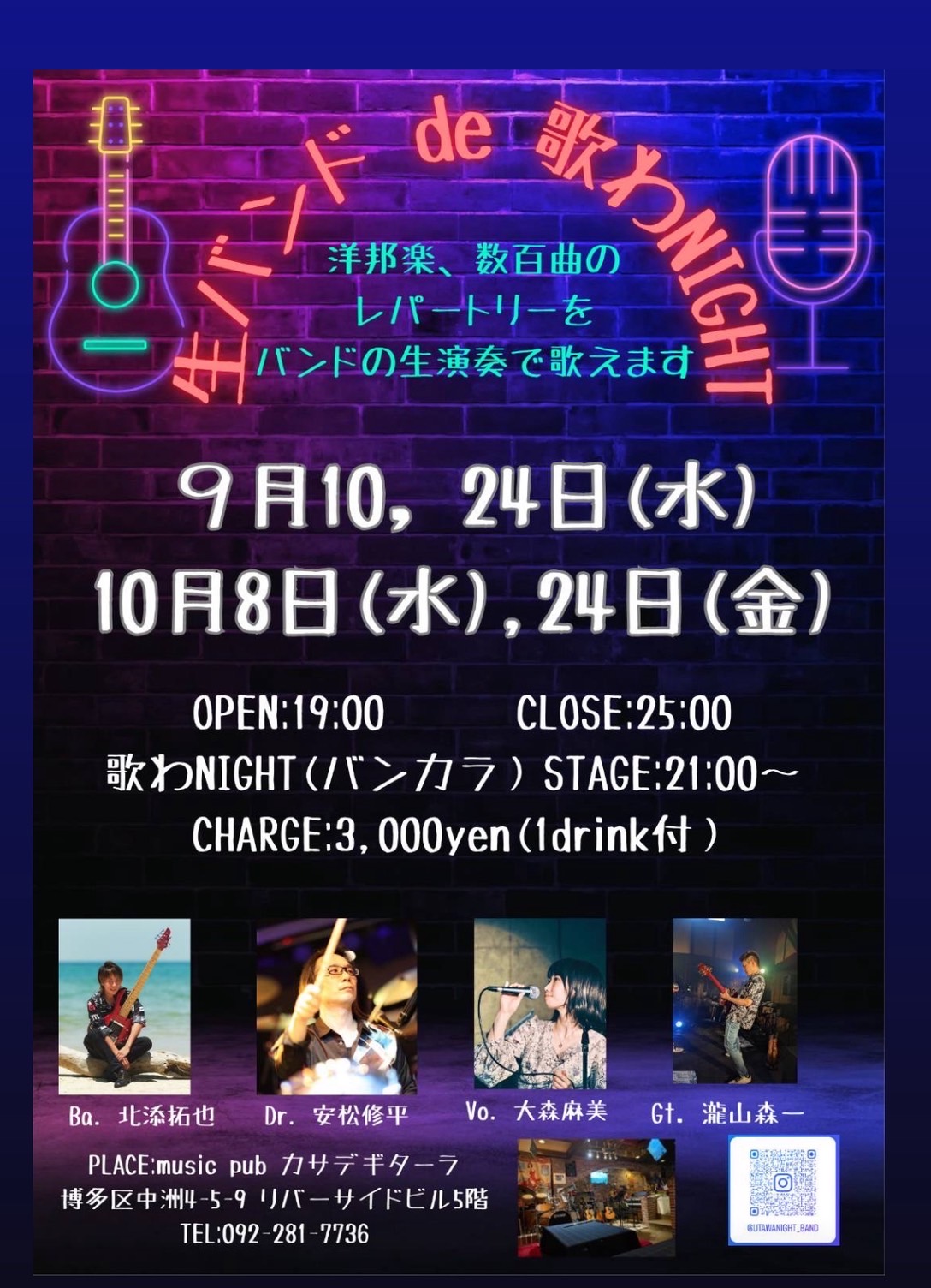 カサデギターラです。 2025.7.15 MUSIC FELLOWS LIVE ![]() LIVE YOUTUBE 生バンド de 歌わNIGHT 洋邦楽、数百曲のレパートリーを バンドの生演奏で歌えます。 JAM & COOKIN ROCK,JAZZ,POPSフリーセッション 美味しい料理 オールディーズデイ 第2土曜日開催 オールディーズ好き集まれ チャージ2,500円(ワンドリンク付) 古き良きアメリカ 集いてアメリカングラフィティの世界 ![]() アコギターラ・フェスタ 第3土曜日開催 オープンマイク形式 アコースティックが好きな方の集い チャージ2,500円(ワンドリンク付) 弾き語り、歌うたい大歓迎。 懐かしのフォーク、ここで披露しては? 後でセッションもあるかも! フリー演奏パーティ 第4土曜日開催 お食事つき、飲み放題4,500円女性4,000円 ギター演奏、弾き語り、歌うたい大歓迎。 食べて飲んで歌って演奏して。 バック演奏も致しますので、みんなで楽しもう! カラオケーラ導入 ![]() 演奏の合い間に、 また、歌好きなお連れ様も楽しんでいただけます。 カサデギターラ(PPM)ハウスバンド フロンティアーズ ピーターポールアンドマリーの世界を忠実に再現。 魅惑のハーモニーをお酒と一緒にご堪能ください! ![]() 「野口ギター教室」開催! ギターを弾いてみたい方、もっと上手になりたい方 募集しています!詳細はお店にお尋ねください。 ![]() 出演バンド募集中 歌の好きな方も、是非どうぞ! あの頃の歌、皆んなで歌いましょうね。 |